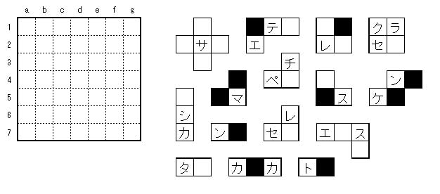 (「ア、黒マス、カ、白マス」の正方形のピースが2つ)
