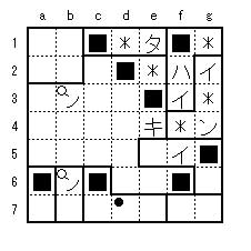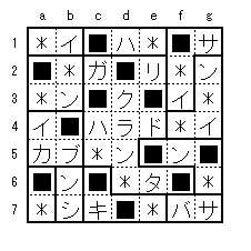 7文字の言葉を避けるように●(7d)を黒マスにします。